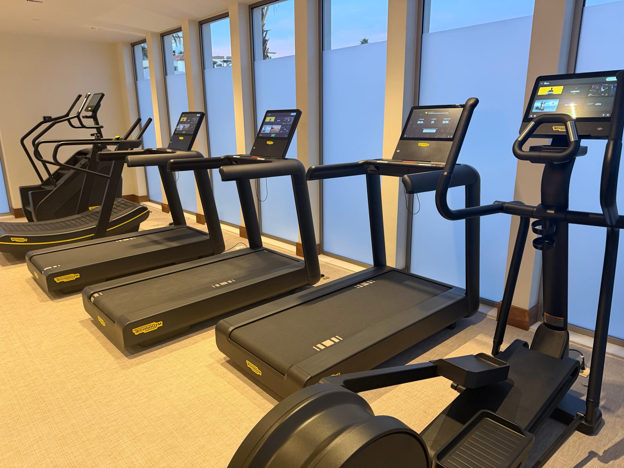 The lobby is magnificent, a beautiful overlook over the resort. The room was great, though it had a lack of true privacy. Mesa Madre, the main restaurant, looked great, though we always ate outdoors. Indoors it looked airy and nicely done. Costamar was beautiful. The pools, see above. The fitness center was large, but spare. They could have a lot more stuff in there, and better stuff. The Technogym treadmills were all a level below the Waldorf, for instance, and even the dumbbell rack was not fully used.