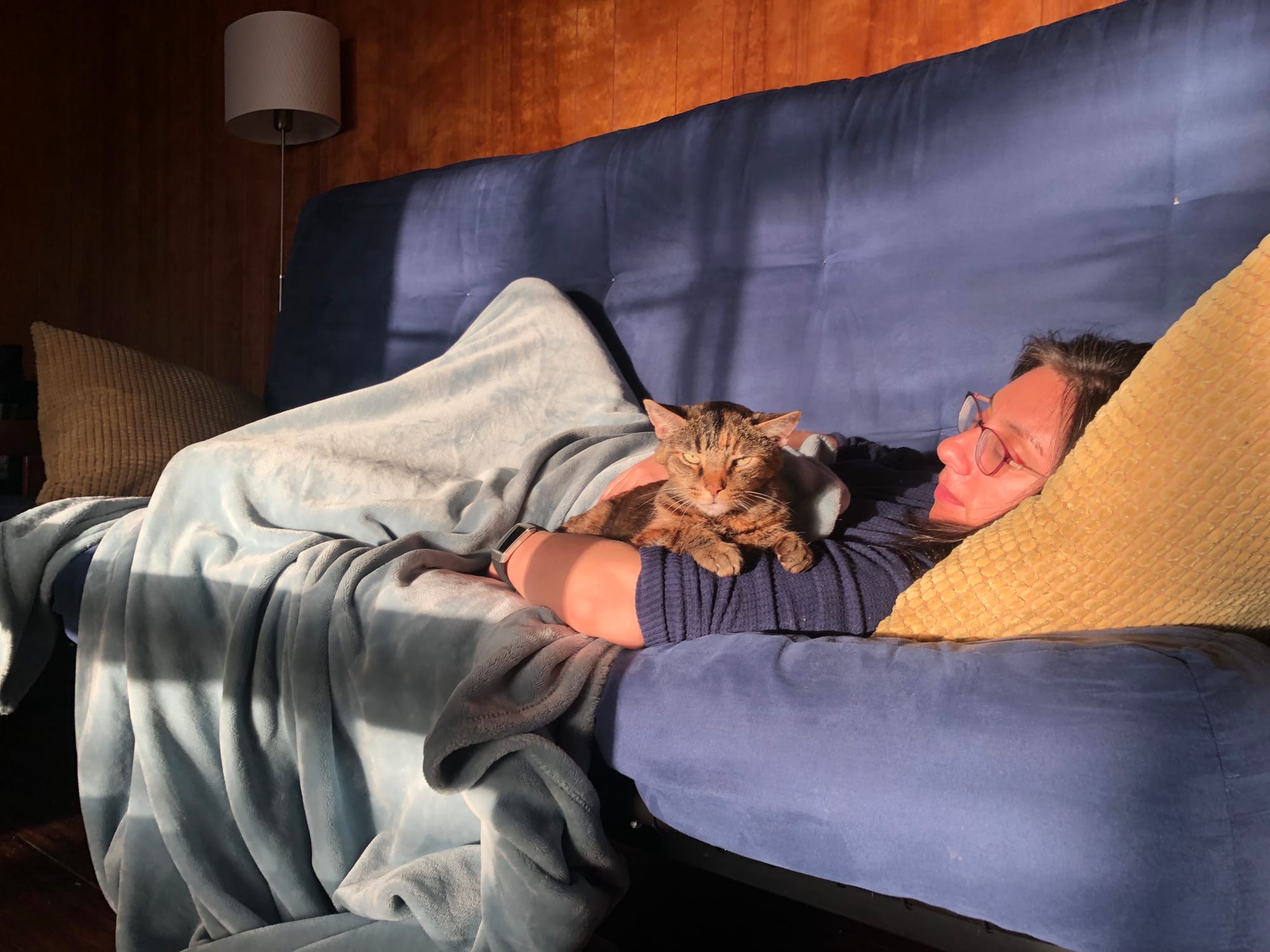 We’ve also found that a nice heated pad, connected to the cigarette lighter if you have one (via a power inverter, such as this one), is a really amazing, calming way to travel for cats. We would plug it in, and then Squiggles would lay on the warm pad in our lap, sleeping and chilling. Definitely really useful for road trips, especially if there is any colder weather! And SIDE NOTE: these kind of heated pads are just as amazing at home - cats absolutely adore them, as they naturally run at a higher temperature than humans. I highly, highly recommend them to everyone.